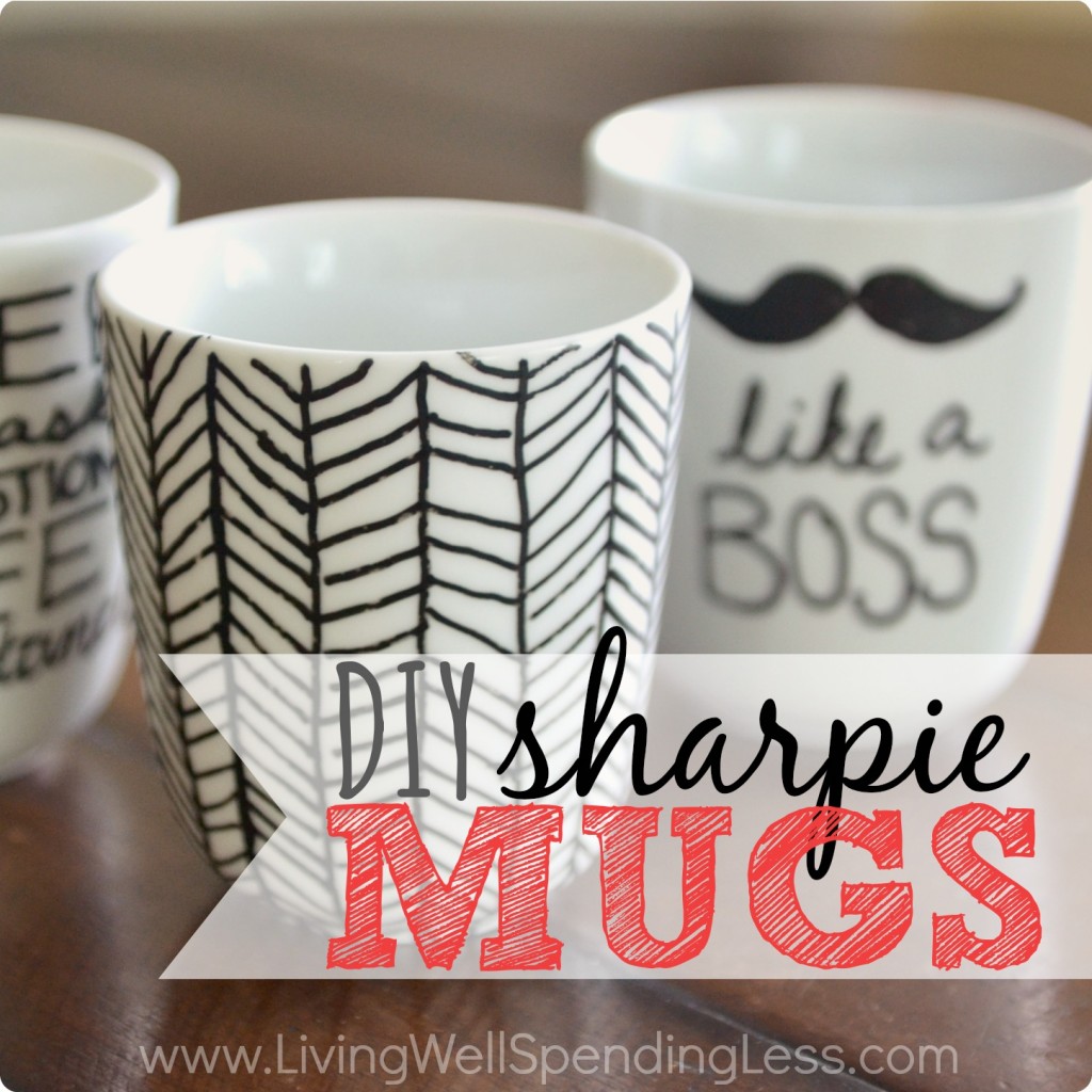 Diy sharpie mugs ~ decorate your own coffee cup with sharpies {don't miss our tips to make your mug last!} diy your own coffee mug gift in minutes using paintedbyme markers and stencils.